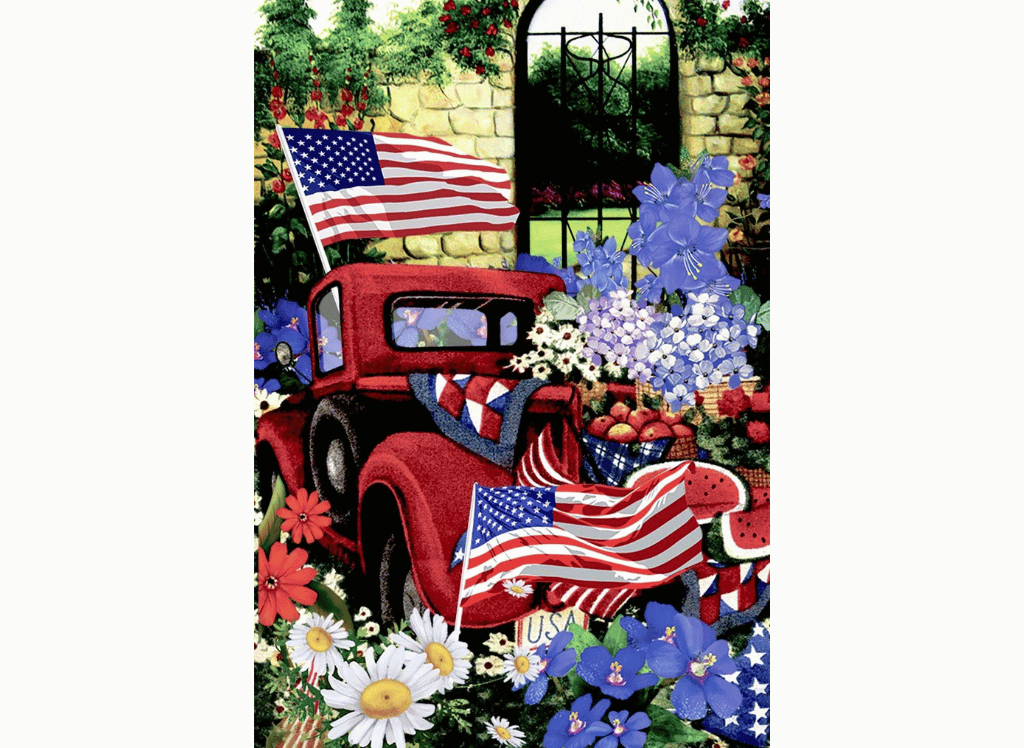 Show your patriotism this 4th of July with the Morigins Patriotic Welcome House Flag! This stunning flag features a vibrant, bright design from original artwork that will add the perfect touch to any home. The artistic flag easily hangs from its sewn-in sleeve, making it easy to switch out for different occasions or seasons. And for added charm, there's even a red truck! Showcase your pride and make a statement in style with this high-quality house flag - now you'll be ready to welcome friends and family as they come by your doorstep!