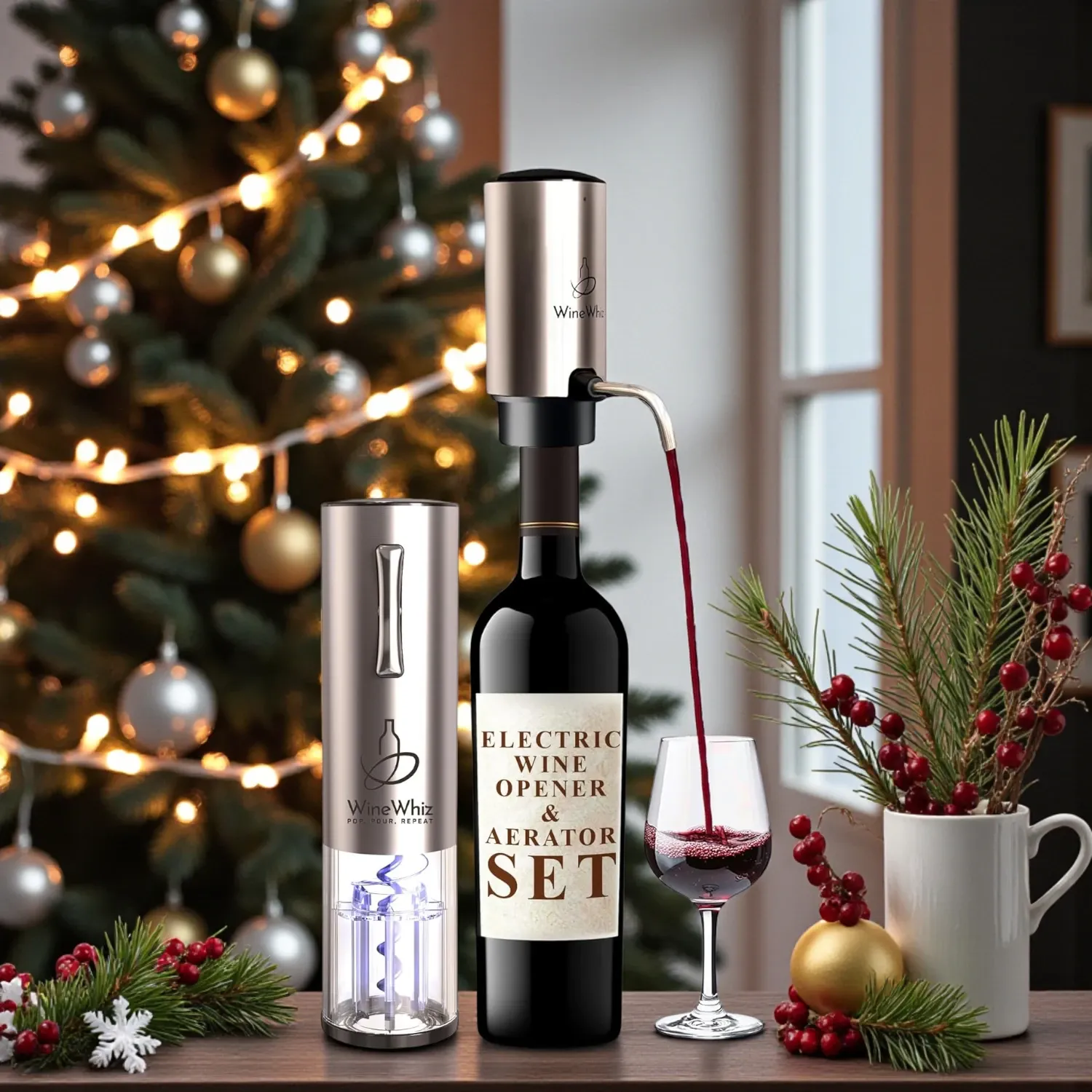 Nothing says “holiday cheer” like a beautifully poured glass of wine — and this electric wine opener and aerator set is the perfect gadget to elevate your holiday drinks. Whether you’re serving cocktails, pairing wine with dinner, or hosting a relaxed night with friends, this set brings luxury to your kitchen counter.