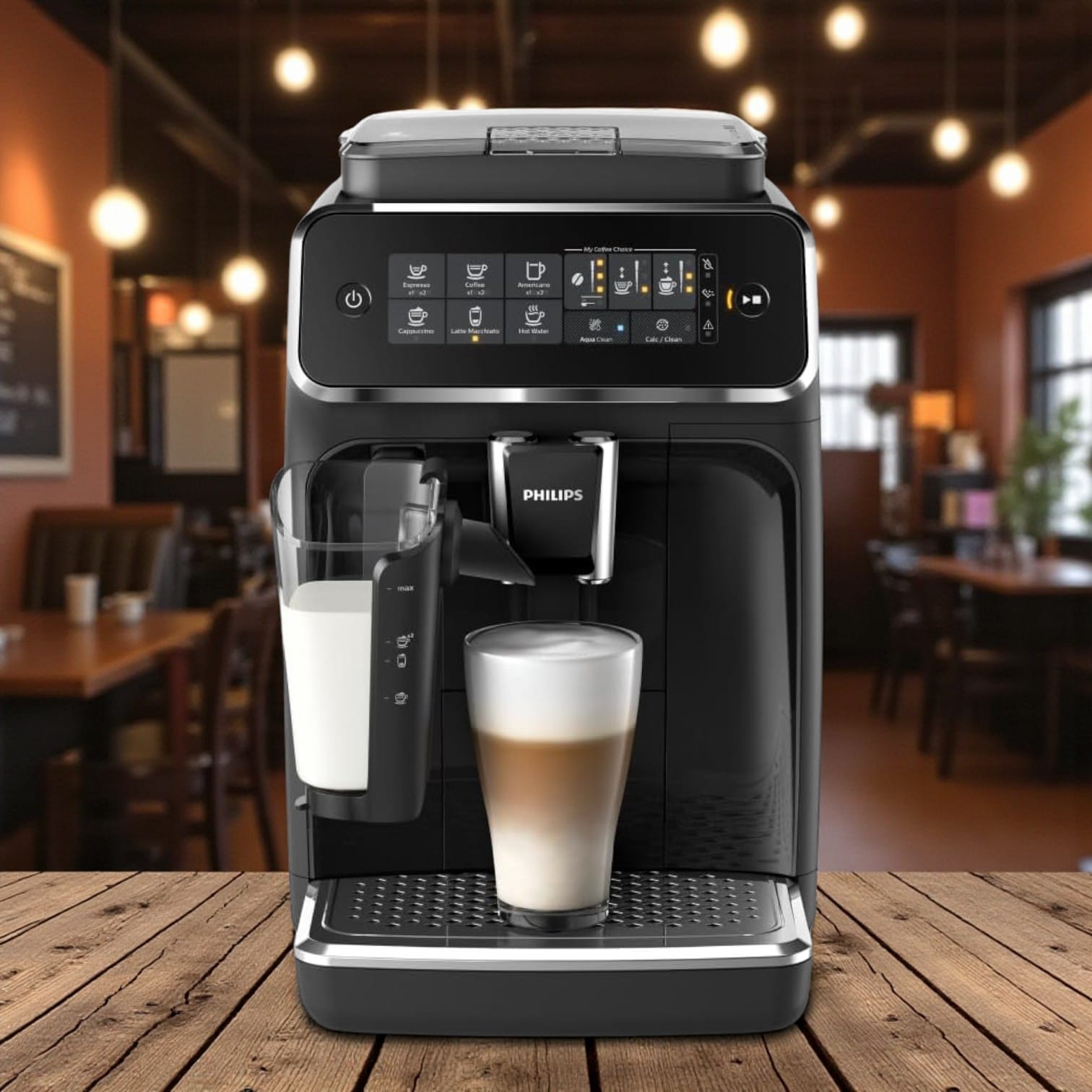 With the Philips 3200 Series, making your favorite hot beverages is incredibly easy thanks to its intuitive touch display. This user-friendly interface allows guests to choose from five aromatic drinksâespresso, coffee, americano, cappuccino, and latte macchiatoâat the touch of a button. Each drink is crafted using 100% freshly ground coffee, thanks to the integrated ceramic grinder. No matter whether you're serving coffee, a perfect cup of espresso, or frothing milk for a cafĂ© latte, this machine ensures consistent results and crowd-pleasing options.