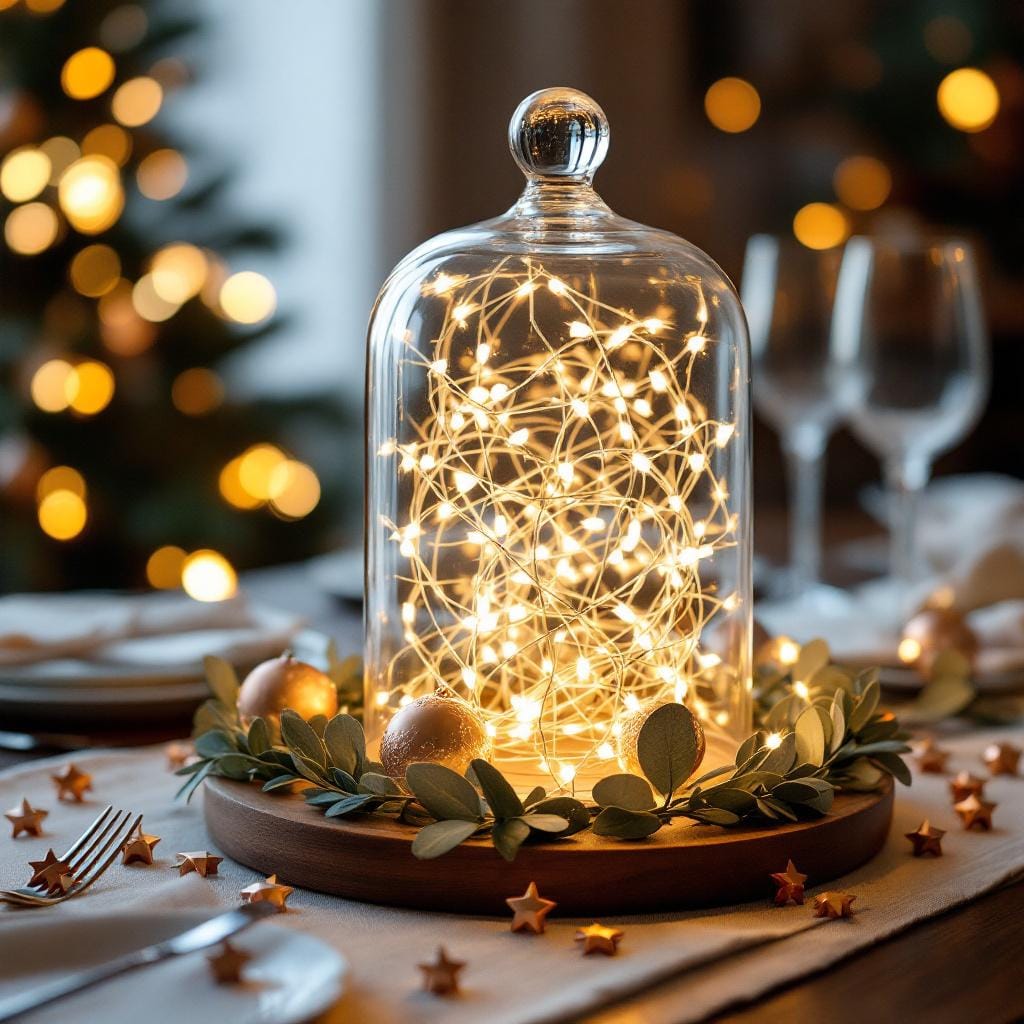 Weave a string of battery-operated twinkle lights through your new winter greenery on the mantel. Fill a large glass cloche or vase with a delicate bundle of fairy lights to create a captivating centerpiece for your dining table. You can also drape them around mirrors, headboards, or bookshelves for a touch of whimsy. This simple addition creates a cozy feel and sets a celebratory holiday mood as Christmas nears.