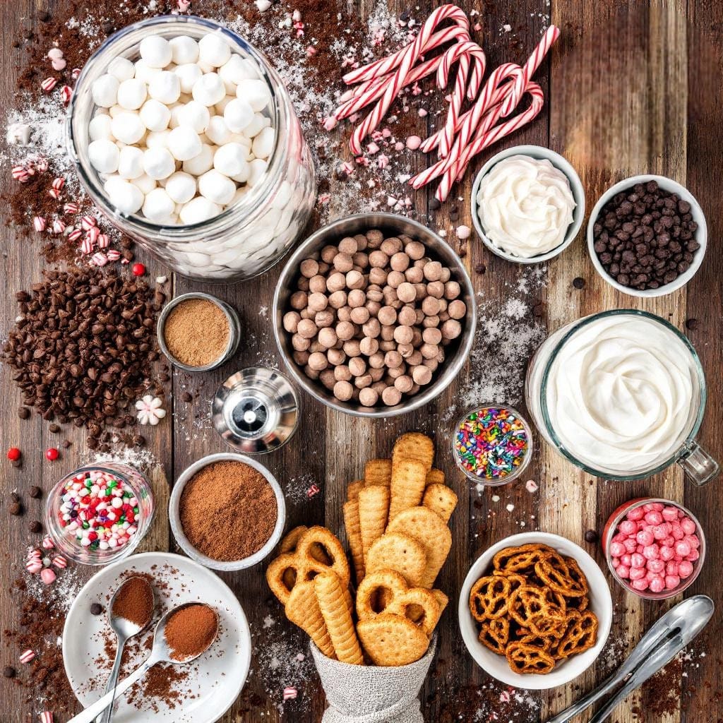The toppings are arguably the most fun part of any DIY hot chocolate bar. This is where everyone, especially kids, can get creative. The goal is to offer a variety of textures and flavors. Start with the essentials: a can of whipped cream, a big jar of mini marshmallows, and whipping cream as another delicious topping option. From there, build out your selection with different toppings that offer crunch, sweetness, and festive flair.