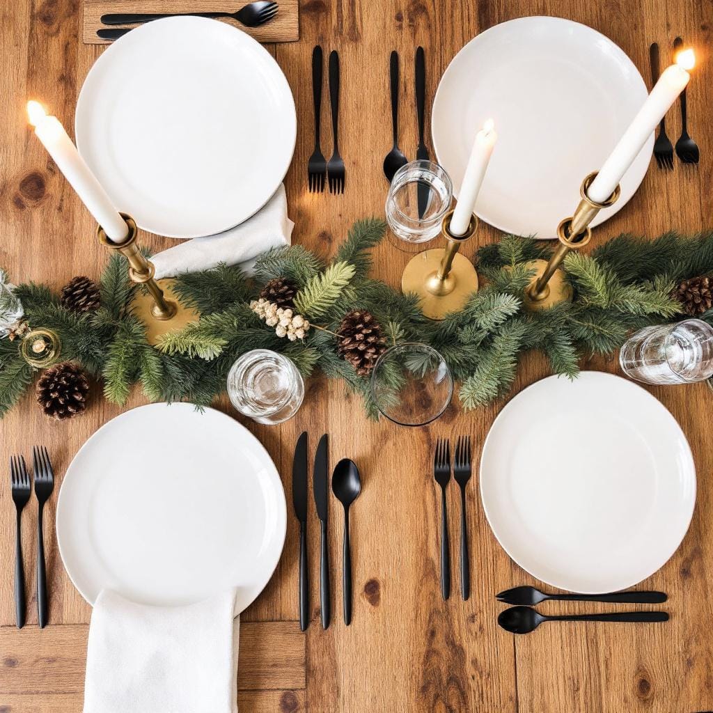 Styling Formula: A bare wooden table or a simple, solid-colored tablecloth in charcoal or cream is your canvas. Use sleek, handle-less glassware, matte black flatware, and simple white plates. A single, dramatic branch or a trio of minimalist brass candlesticks in the middle provides all the centerpiece you need.