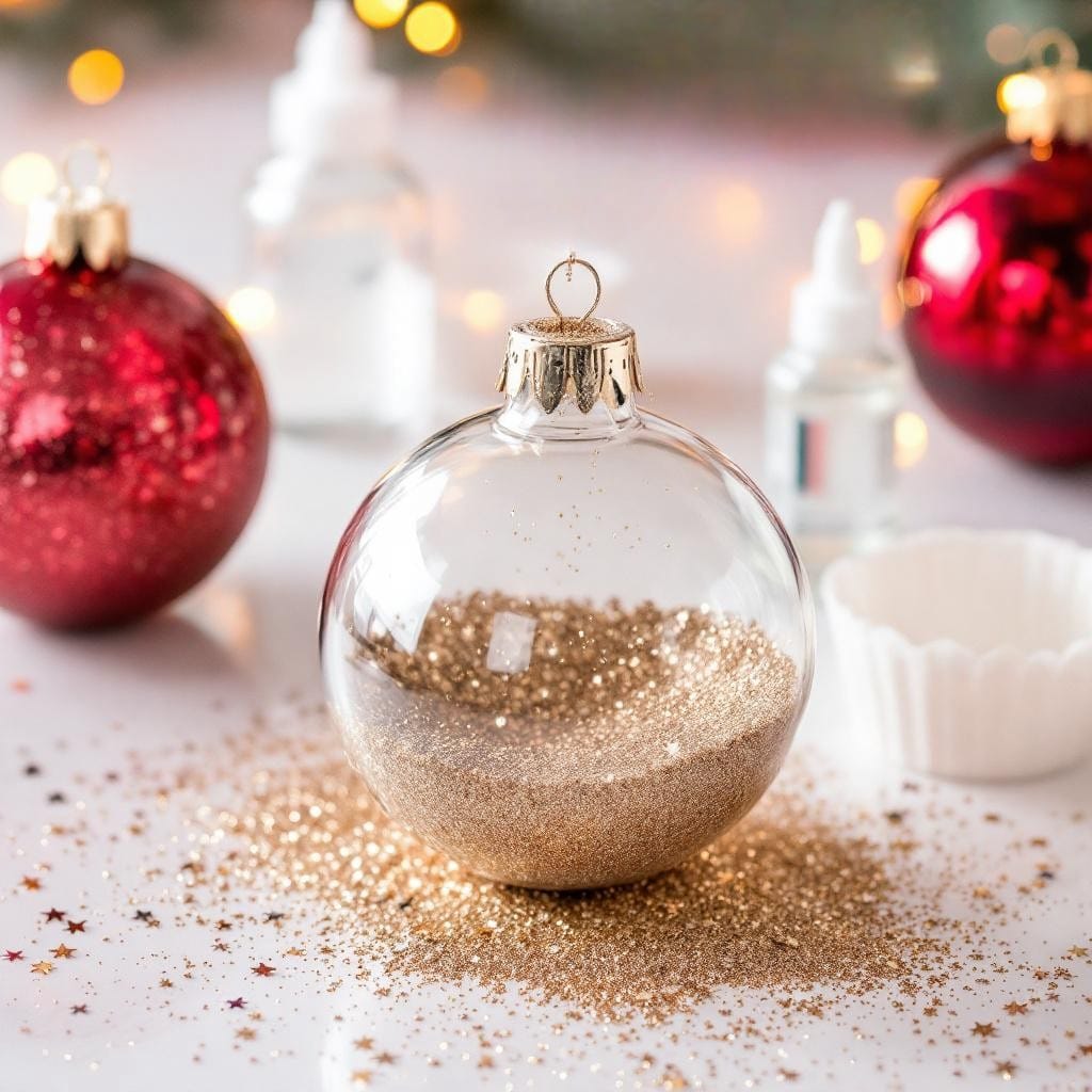 - Add Glitter: Using a small funnel, pour a generous amount of your chosen glitter inside the coated ornament.