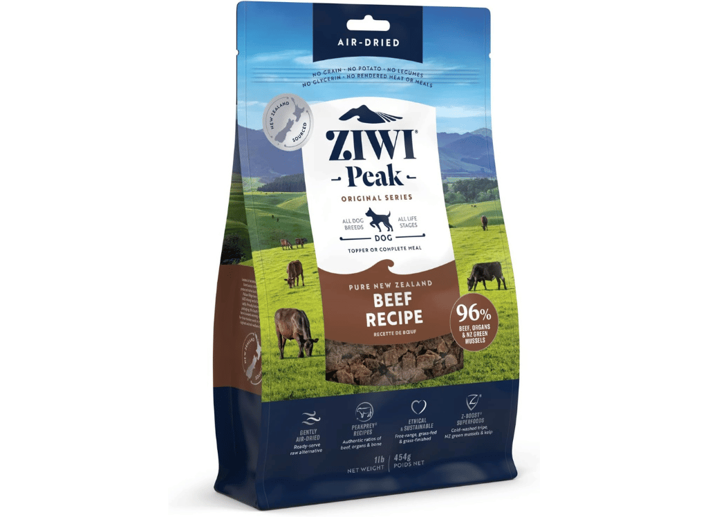 The best ingredients of ZIWI Peak Air-Dried Dog Food underscore its standing as a superior selection for air-dried dog food. Notably, it features 96% free-range beef, organs, and bones, emphasizing the brand's commitment to high protein and nutrient-dense formulations. This authentic whole-prey ratio ensures that pets receive peak nutrition closely mimicking their natural dietary needs.