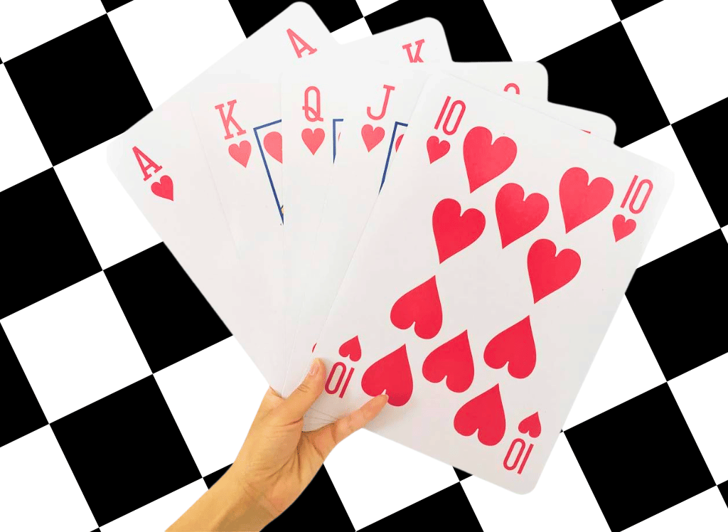 Whether they're used for actual games or as part of your decor, these oversized cards elevate the gaming thrill and make every guest feel like theyโve truly stepped through the looking glass. ๐