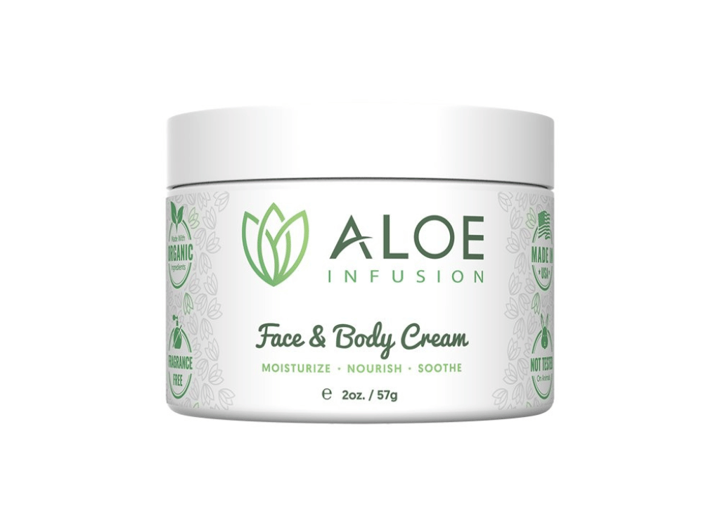 The Aloe Infusion Body and Face Moisturizer is an all-natural, certified organic product designed to soothe and protect damaged skin. It's formulated with Organic Aloe Vera, Kukui Nut Oil, and Grape Seed Oil to provide long-lasting deep hydration that won't clog pores or feel greasy. This moisturizer repairs the skin while promoting natural cell growth by soothing Seborrheic Dermatitis, Atopic Dermatitis, Eczema, and Psoriasis. It's a safe and effective solution for those looking for a 100% natural way to keep their skin feeling soft all day.