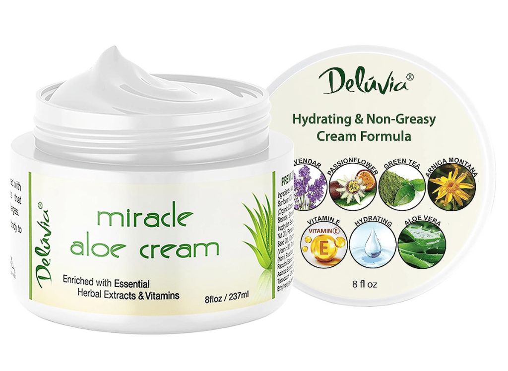 Deluvia Miracle Aloe Lotion is a high-quality moisturizing and soothing product that combines the best of both worlds – aloe vera and vitamin E. This unique lotion can be used as an all-over body moisturizer, sun cream, foot cream, or eczema cream. It provides gentle nourishment for your skin while also protecting it from environmental damage.