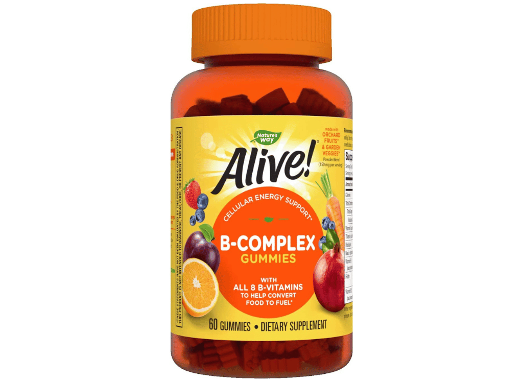 Nature's Way Alive! B-Complex Gummies are formulated to provide your body with daily energy support. Each serving contains all 8 essential B vitamins, helping you to convert food into fuel and maintain peak performance. This special blend of Orchard Fruits & Garden Veggies powder (150 mg per serving) makes these gummies a delicious way to supplement your diet with B-vitamins.