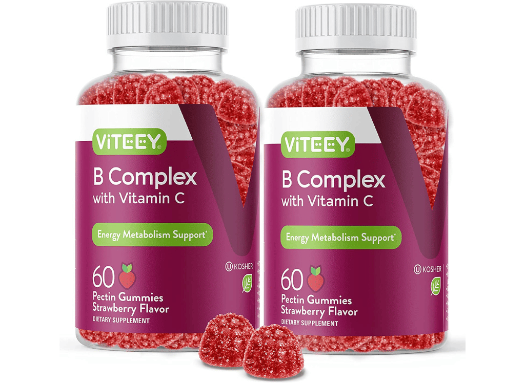 Viteey Vitamin B Complex Gummies offer an easy and delicious way to get your daily dose of essential vitamins and minerals. Each serving contains 15 mg of vitamin C (ascorbic acid), 20 mg of niacinamide, 2 mg of vitamin B6, 680 mcg of folate, 30 mcg of vitamin B12, 75 mcg of biotin, and 10mg of calcium. Inositol 7mg is also included for additional support. Take 1-2 gummies each day for best results. These kosher-certified supplements are produced and formulated to a higher standard with great strawberry flavor that makes nutrient intake enjoyable!