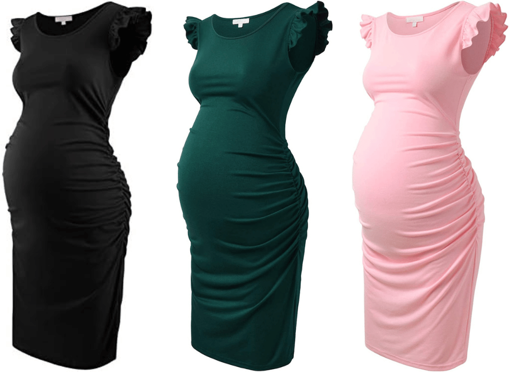 This must-have dress features a soft and comfortable fabric that's perfect for everyday wear. And with side ruching on the sides, it provides extra space for your growing bump without compromising on style. Plus, its lovely flying sleeves add an extra touch of elegance to any look!