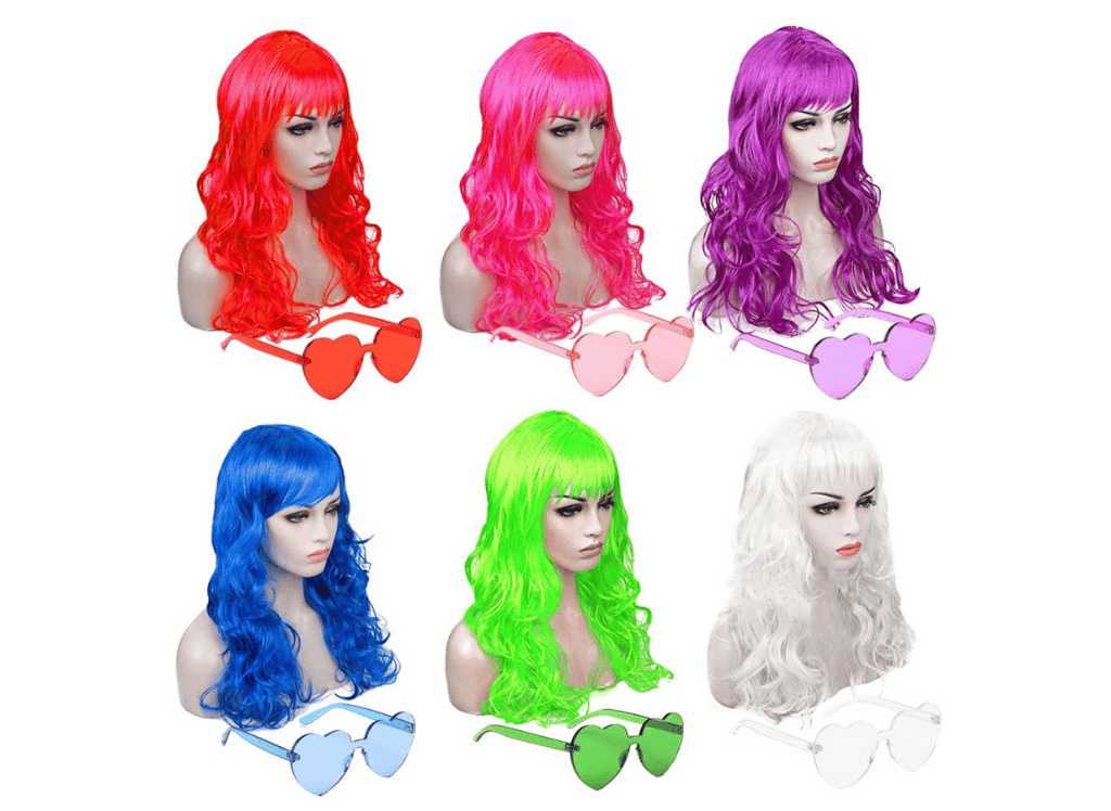 The DIYI Long Colorful Wigs 6 Pack Wavy Party Wigs is a perfect choice for any occasion. This colorful wigs set includes six long curly wigs in various colors and six pairs of glasses to match each hue. With this convenient set, you can easily find the right wig and pair of glasses to fit your style and create unique looks to suit any mood or event. The generous quantity ensures that you have enough to share with friends when needed. Whether you're looking for a whimsical statement piece or something more subtle, these vibrant wigs will be sure to turn heads!