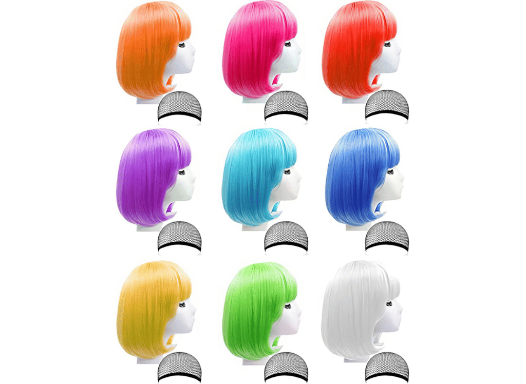 The LOHO WONDERZ 9 Pieces Short Bob Hair Wigs are designed to provide comfort and breathability, making them ideal to wear all night. With an adjustable elastic band inside the mesh sleeve, these wigs can fit a variety of sizes with ease. Whether you're attending a party or simply looking to switch up your look on a regular basis, these colorful hair wigs offer a great way to add some fun and flair into your life.