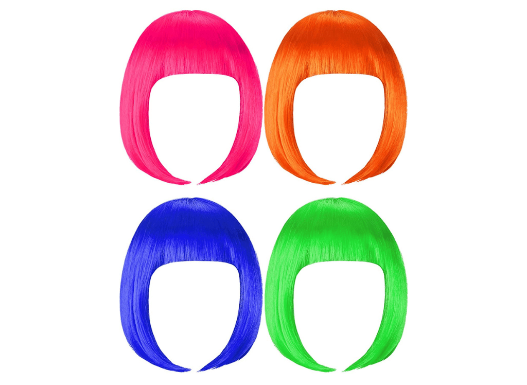 The WILLBOND 4 Pieces Colorful Bob Wigs is the perfect way to bring life to any costume or party. Included are four unique shades of bob wigs in pink, orange, green and blue that will help you stand out from the crowd. Whether you're attending a bachelorette party or going for a fun night out on the town with friends, these colorful wigs will add an element of playfulness and flair to your look. The high quality synthetic fibers make each wig comfortable and lightweight while giving off natural shine and texture. With so many vibrant options available, express yourself in style wherever you go!
