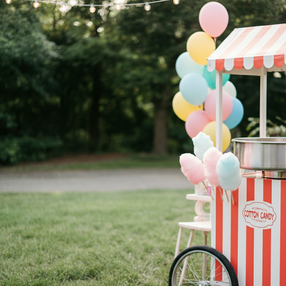 No carnival birthday party is complete without the allure of fluffy, sweet cotton candy. A cotton candy machine is not only easy to use but also brings a whimsical touch that kids (and adults!) can’t resist. Guests will have so much fun grabbing their own sugary clouds to eat and enjoying this classic carnival snack. You can even choose different colors and flavors to make it extra exciting. Set it up at a booth to mirror a real carnival stall!