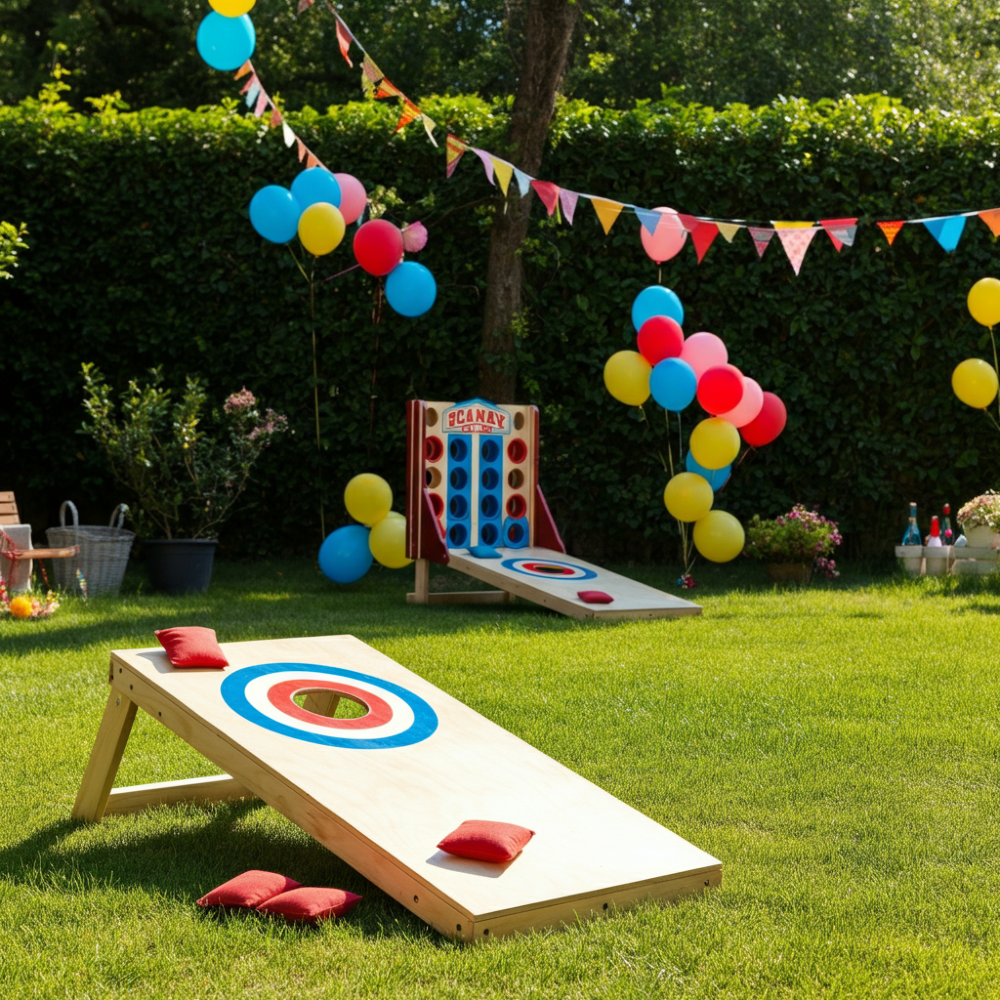 Carnival games are the heart and soul of any backyard carnival, and a bean bag toss game is a fantastic choice. This timeless crowd-pleaser is easy to set up and suits kids of all ages. Guests can take turns aiming the bean bags at colorful targets, with prizes awarded for different skill levels. It’s simple, entertaining, and keeps the fun rolling throughout the celebration. Plus, it works wonders for adding competitive energy to the party.