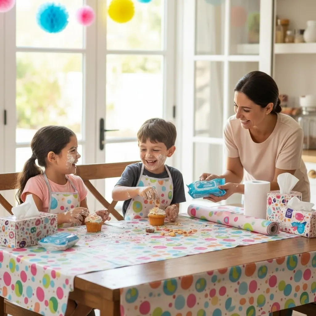 Baking parties are fun, but they can definitely get messy. Use colorful disposable tablecloths to protect your table and make cleanup a breeze. Stock up on wet wipes and paper towels for quick fixes during the party, so parents can relax while the kids enjoy baking without worry. Encourage guests to help with the cleanup process to ensure no one has to leave with a messy home.
