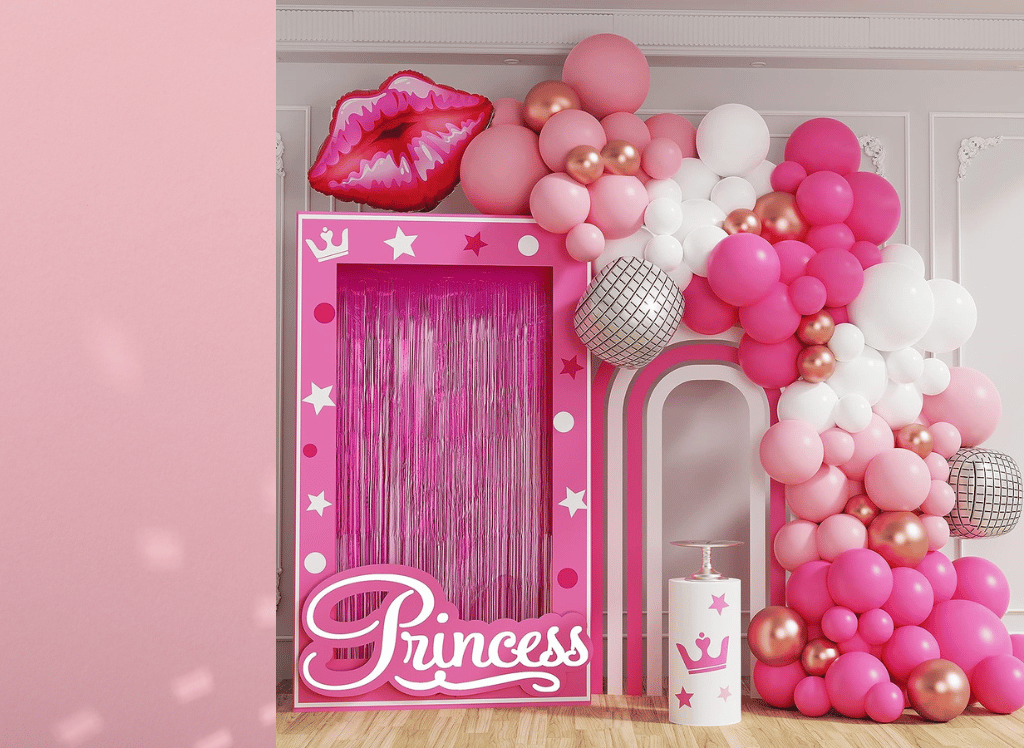 Planning a Barbie theme party doesn't have to be hard when you use this Pink Balloon Garland Arch Kit. With 129 latex and metallic balloons in shades of pink, rose red, and rose gold, 2 silver disco balloons, a lip-shaped foil balloon, and all the extra supplies you need, it takes just 30 minutes to create a stunning balloon arch that will take your Barbie-lover's dream party to the next level. Plus, you can elevate the arch even more with a life-sized Barbie box!