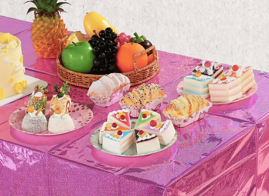 Get your Barbie-themed party glammed up with this 4-Pack of Pink Iridescence Plastic Tablecloths! These shiny holographic tablecloths will add just the right amount of sparkle and shine to your table—the perfect decoration for a birthday party bash! The durable plastic material won't tear, and you can simply wipe clean or throw away easily when the party's over!