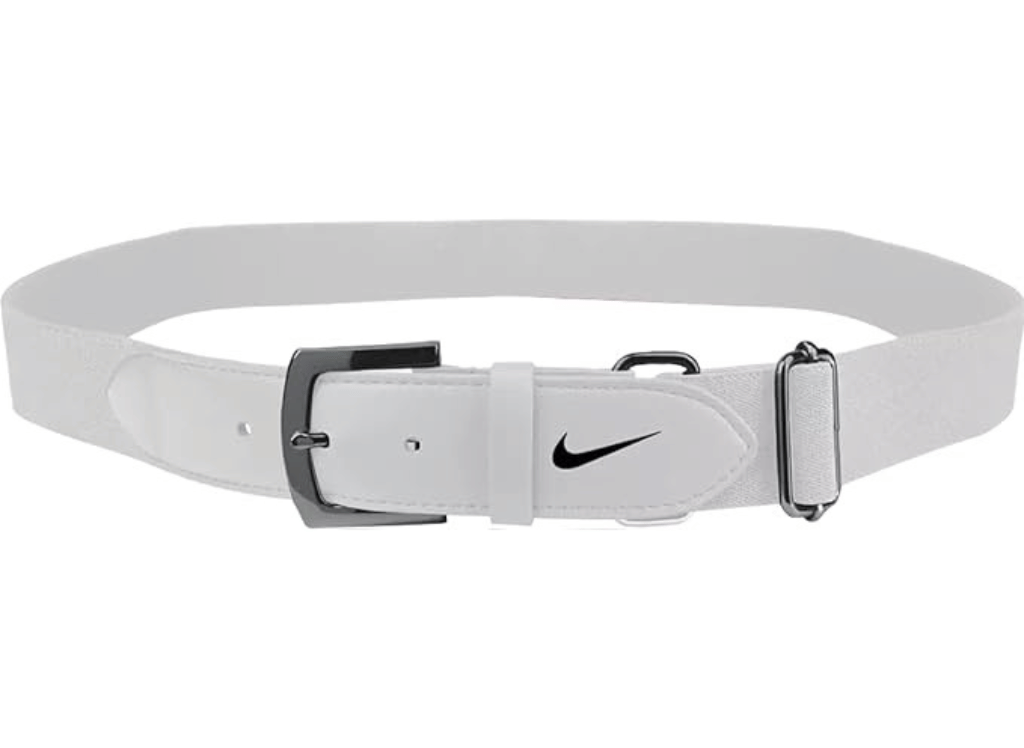 Crafted with a premium blend of polyester and leather, the Nike Baseball Belt in white is designed to withstand the intensity of your game and keep you looking sharp. Plus, its easy hand-wash maintenance means you can keep your focus where it matters most—dominating the field with style and comfort.