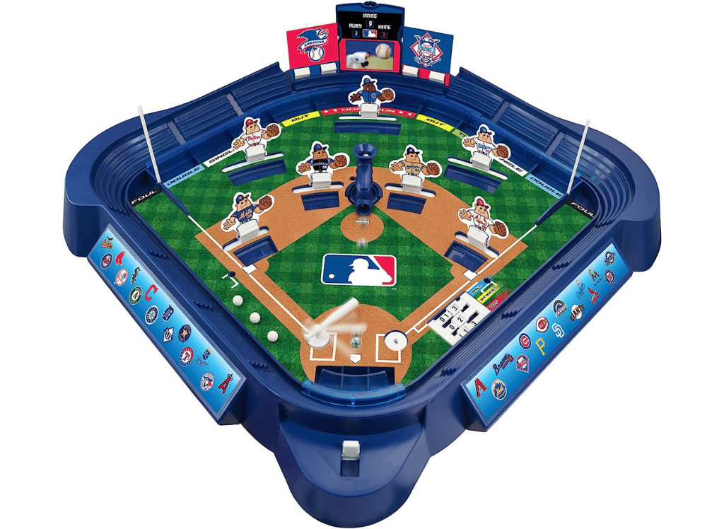 MLB Slammin' Sluggers is an exciting baseball game that allows two players to simulate a real-life baseball game. The innovative magnet technology and control system provides two players with the opportunity to take turns as pitcher/fielder and batter, while also tracking balls, strikes, and outs. You can customize your field with up to 30 MLB team billboards and over 200 individual player pieces! This game is suitable for kids aged 6 years old or older and will provide hours of entertainment.