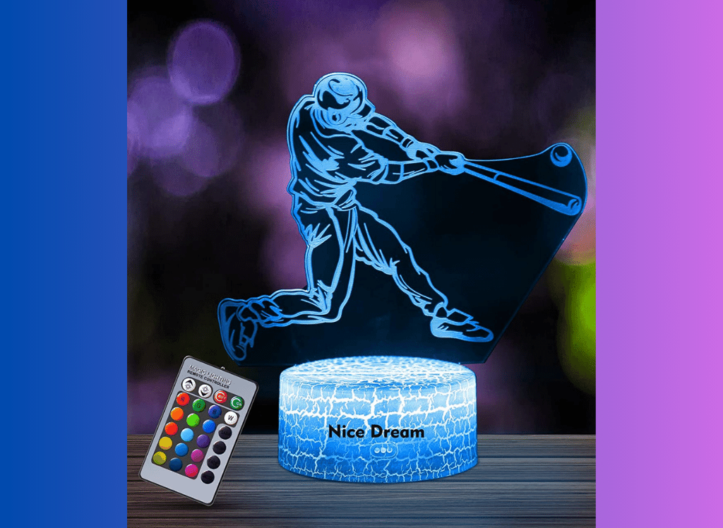 The Nice Dream Baseball 3D Illusion Night Light Lamp is the perfect way to decorate your child's bedroom while providing a comforting presence with its changing colors and soft, flicker-free light. The lamp is powered by either USB or battery. It's made of high-quality LED lights and materials that have passed all safety certifications, so you can be sure your kids are safe when playing around the lamp. With its vibrant baseball symbolizing vitality, enthusiasm and motivation this night light makes an ideal gift for children as well as adults alike.