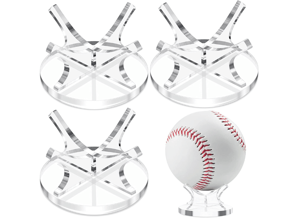 A baseball display stand is an item of furniture used to showcase and protect collectible toys, autographed, and game-used baseballs on your desk. These stands come in various sizes and shapes and details, depending on how many balls you want to display. Sellers on Amazon offer an array of options just simply add to cart to compare your options.