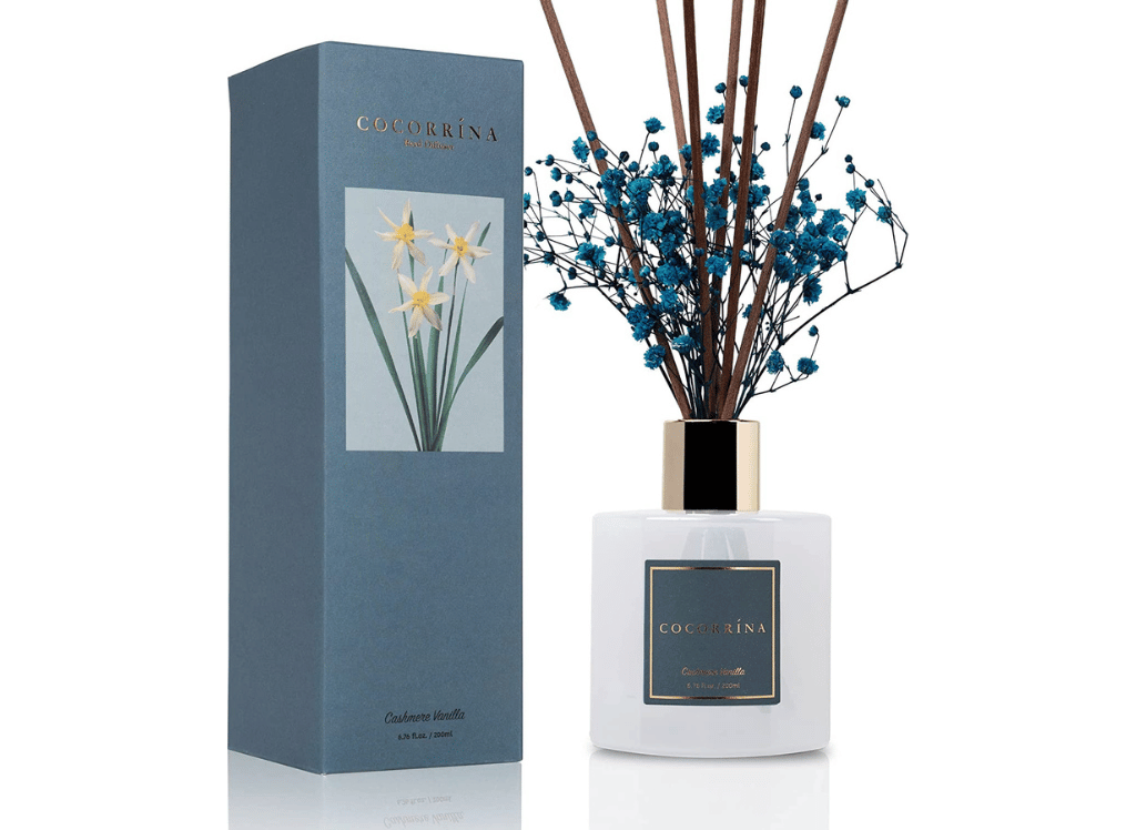 The CocorrĂna Premium Reed Diffuser Set is a luxurious way to fill your home with an inviting scent. This set features a 6.7 fl oz fragrant mixture made of essential oils and the warm, comforting aroma of cashmere vanilla. Giving you total control of the aromatherapy experience, this set includes one glass diffuser bottle, six pure cotton sticks and one piece of real preserved baby's breath flowers. Simply adjust these sticks to release more or less pleasant fragrance into the air for ultimate relaxation!
