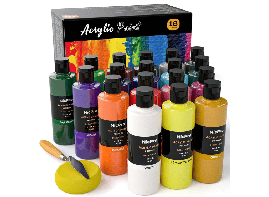 Oh, and did we mention the versatility of the Nicpro 18 Colors Large Acrylic Paint Set? Whether you're planning to bring your ideas to life on canvas, glass, or even ceramic, this set has got you covered. Plus, with safe, non-toxic paints that are a breeze to clean up, you can focus on unleashing your creativity without a worry in the world! 🌈✨