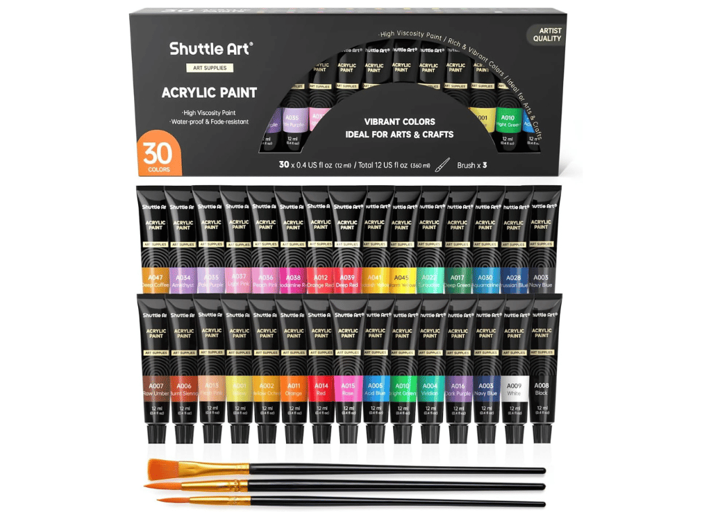 The Shuttle Art Acrylic Paint 30 Tubes Set is your next must-have in the art supply collection! Each tube packs a colorful punch that brings all your creative visions to vivid life. Plus, it's perfect for artists of all levels aiming to add a splash of color to a variety of projects – talk about versatility! 🌟