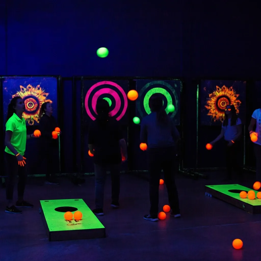 This is especially popular during slower moments or as a warm-up activity before games begin. It also creates great photo opportunities and helps guests feel part of the glow theme.