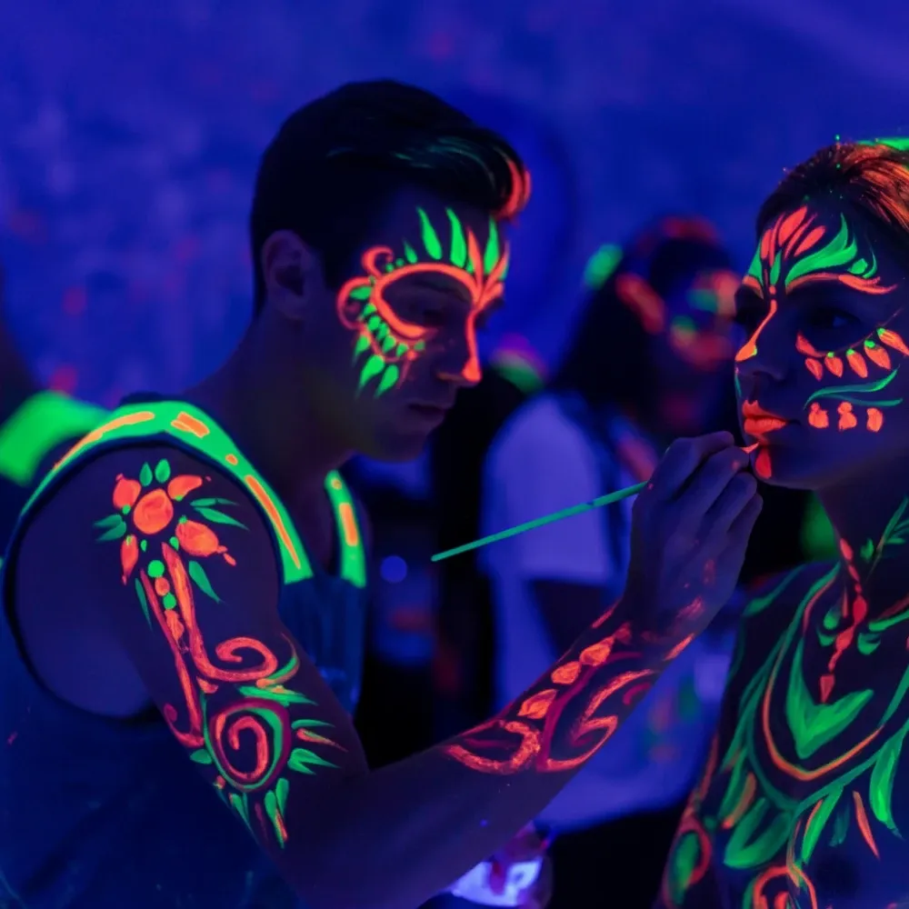 Body paint adds a creative break to high-energy games. Guests can decorate arms, faces, or hands with glowing designs that show up beautifully under black lights.
