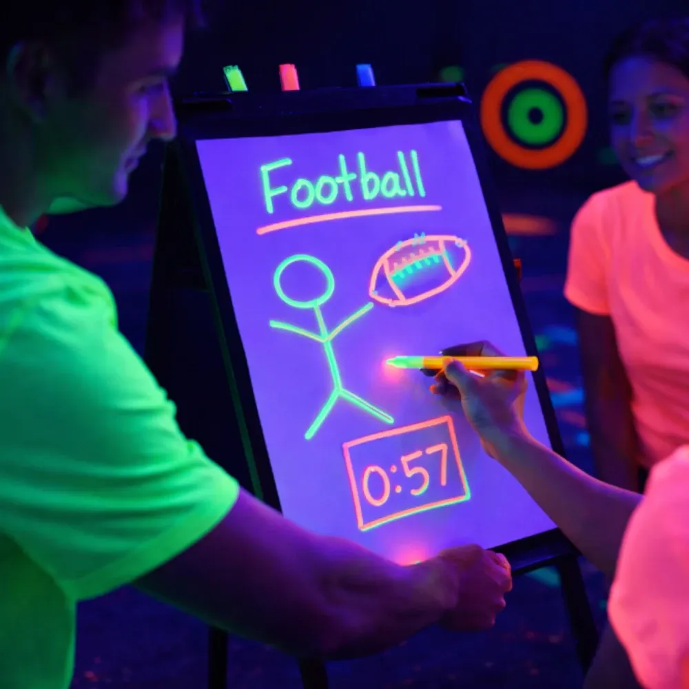 One of the biggest advantages of black light games is how they transform familiar ideas. Bowling becomes dark bowling. Jenga becomes dark jenga. Pictionary becomes a glowing guessing challenge.