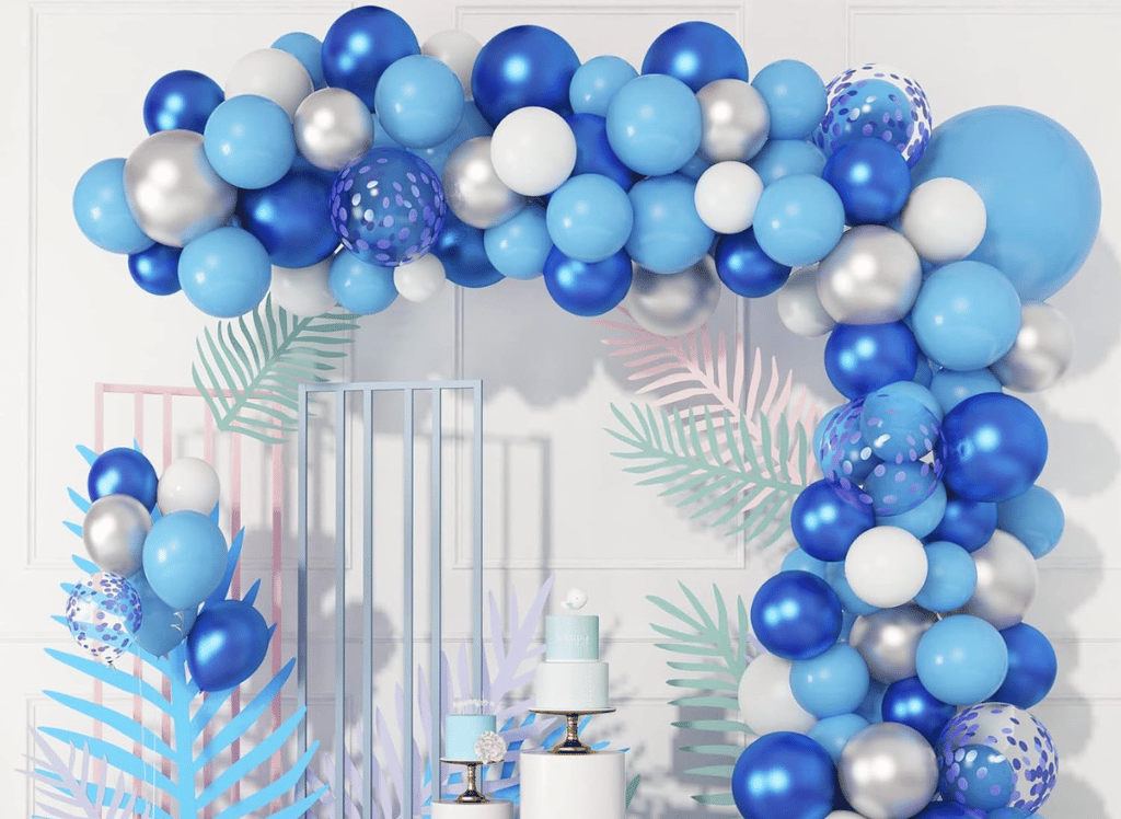 Create an awe-inspiring party backdrop with this Blue Balloons Garland Arch Kit. Imagine a stunning display of navy blue, silver, and metallic white balloons surrounding your birthday banner for the perfect photo spot! 🎈✨