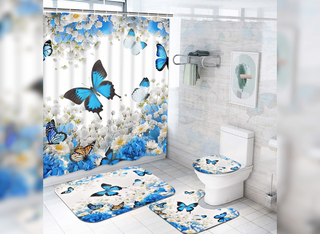 The Ikfashoni 4 Pcs Flower Butterfly Shower Curtain Accessory Set is like a breath of fresh spring air for your bathroom! 🌸🦋 Imagine being surrounded by cheerful blossoms and frolicking blue butterflies every time you step into the shower.