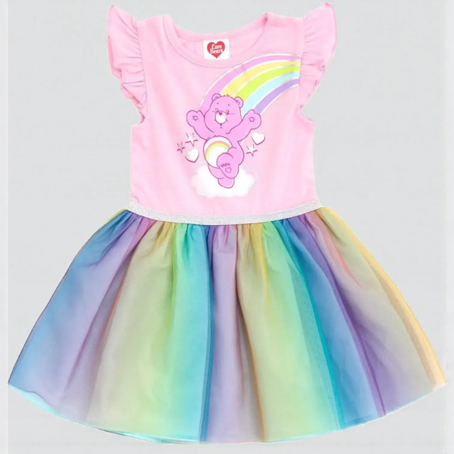 This Care Bears Inspired Birthday Outfit is an adorable choice for any toddler's special day. The beautiful full tutu dress features in pink, orange, yellow, apple green, turquoise and lavender tulle. With this outfit your little one will look as sweet and adorable as the Care Bears!