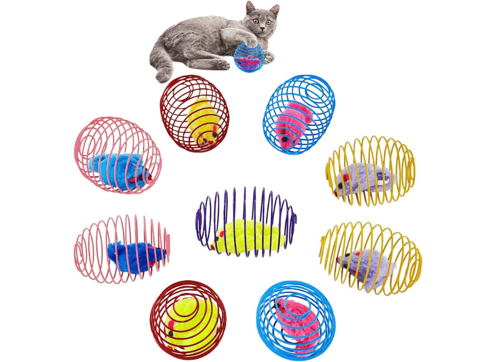 Jump into a world of fun with the QUVOVID Cat Spring Toys 9 Pack! π» These toys are a jackpot of joy, featuring a mix of designs that will keep your kitty's playtime fresh and exciting. Whether it's chasing after a rolling cage ball or batting at the brightly colored springs, your cat's days will be filled with endless amusement. ππΎ