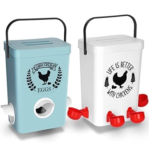 - Weather Resistant: Both the chicken waterer and feeder come with lids, protecting feed from the elements and preventing algae growth.