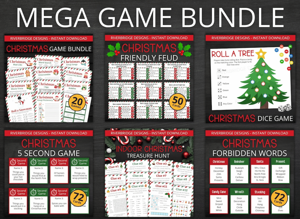 Why choose one Christmas game when you can have a whole bundle of fun? The Christmas Mega Game Bundle Printable is your one-stop shop for hours of entertainment. From Family Feud Christmas to a snowball's chance at Forbidden Words, this bundle is packed full of games for everyone. Simply print, play, and let the festive feuds and merry-making begin!