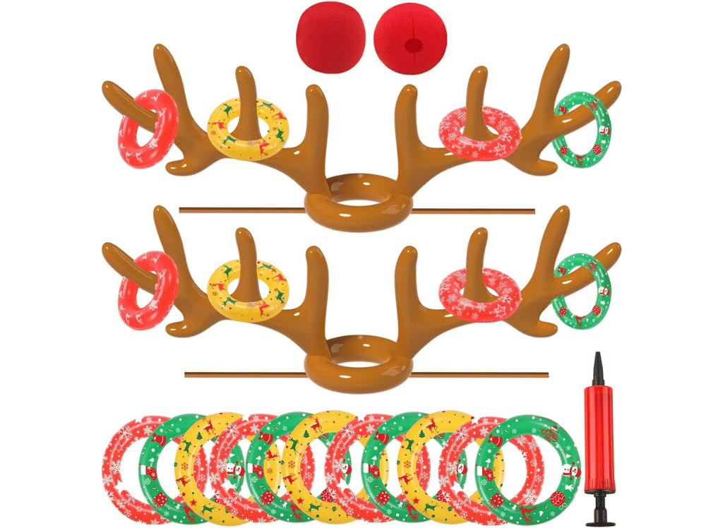 Antlers up, it's time for some reindeer revelry! The Reindeer Antler Ring Toss Game brings inflatable fun and holiday silliness in spades. Slip on your antler hats and try to toss the rings onto each other's antlers – it's harder than it looks! Perfect for parties, this game is a surefire way to have your guests literally ROFL-ing during the holiday madness.