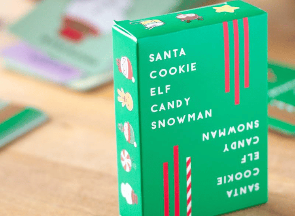 Introducing Santa Cookie Elf Candy Snowman, the Christmas edition of the game that's faster and more fun than shoveling snow! Speed is of the essence as players race to get rid of their cards, calling out the quirky mash-up title without missing a beat. Perfect for those who love holiday games with a quick pace and lots of laughs, it captures the delightful chaos of the holiday season in every round.