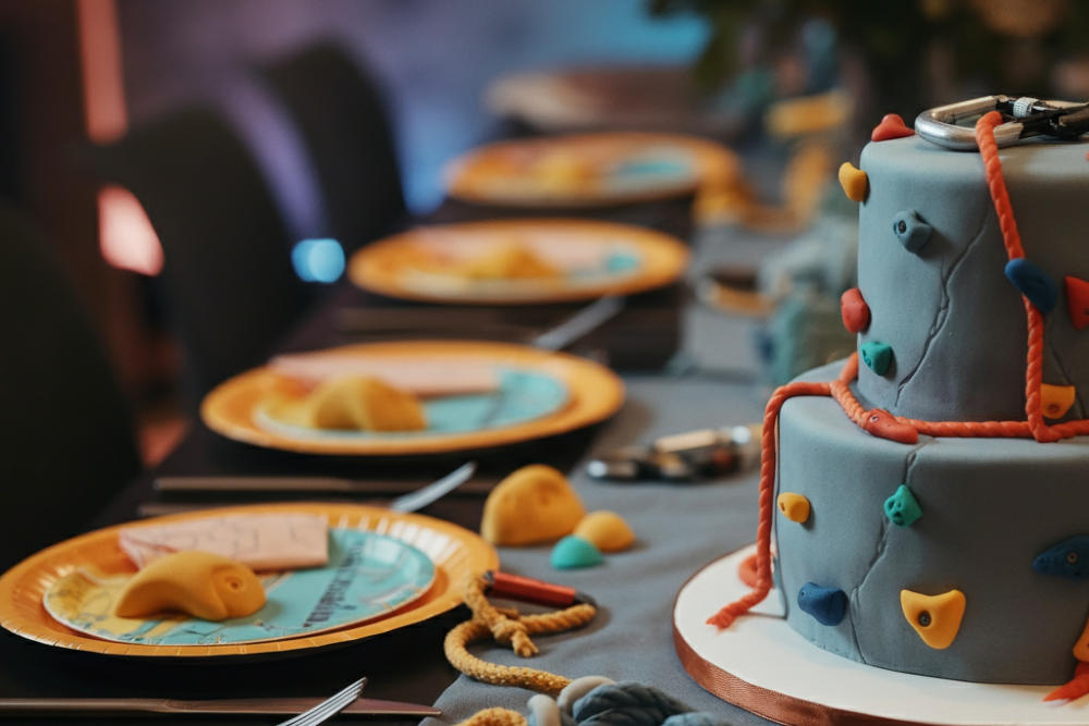 The decorations set the tone for the event, so bring the climbing theme to life. Use banners, balloons, and tableware that reflect the adventure. Look for fun options, such as rock-climbing wall banner or outdoor-inspired bunting.