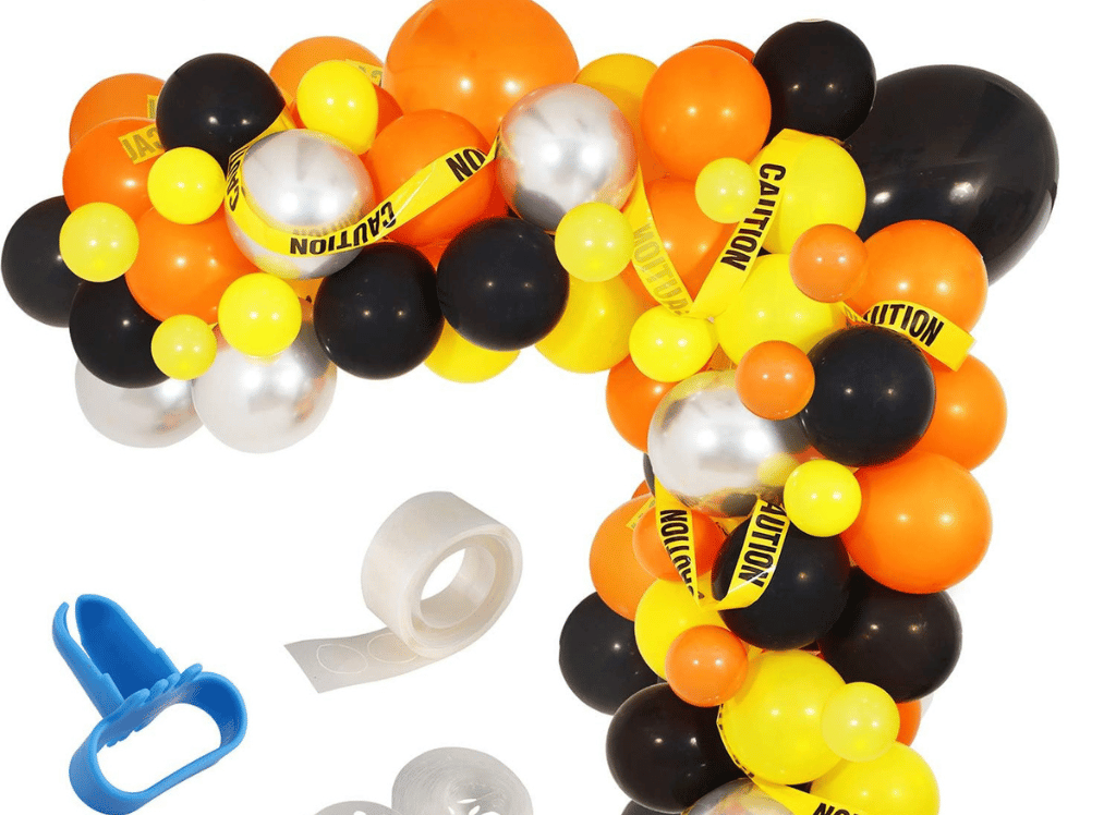 This comprehensive construction party supplies balloon kit comes with an array of balloons in hues of black, orange, yellow, and chrome silver that perfectly encapsulate the construction theme. The kit also includes caution tape, a balloon garland strip, glue dots, a tying tool, and a set of easy-to-follow instructions to ensure a hassle-free assembly.
