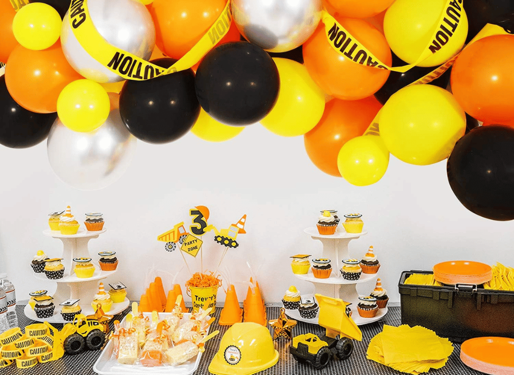 1. What are some good decoration ideas for a construction-themed birthday party?