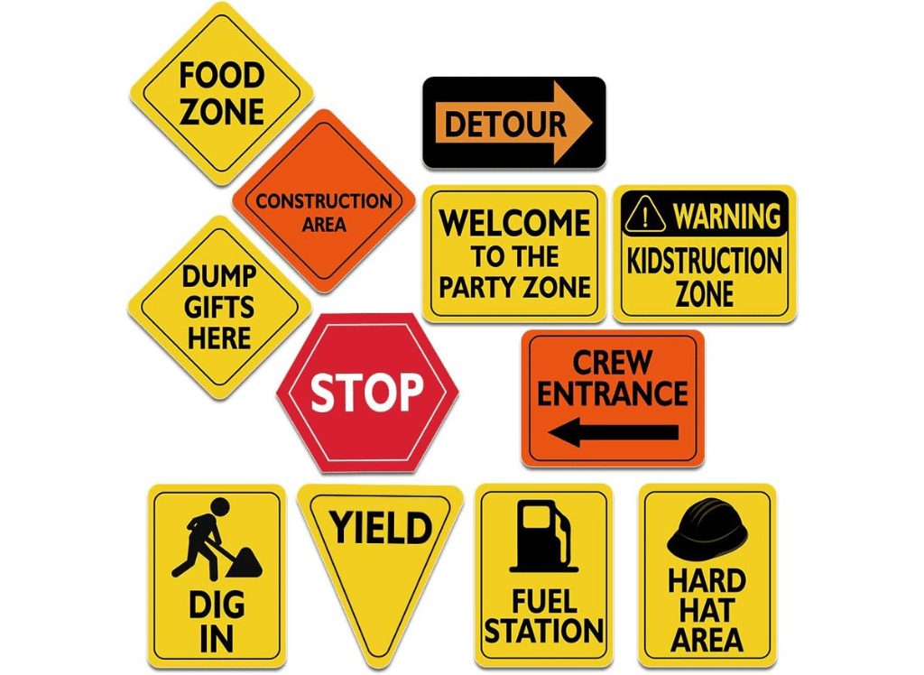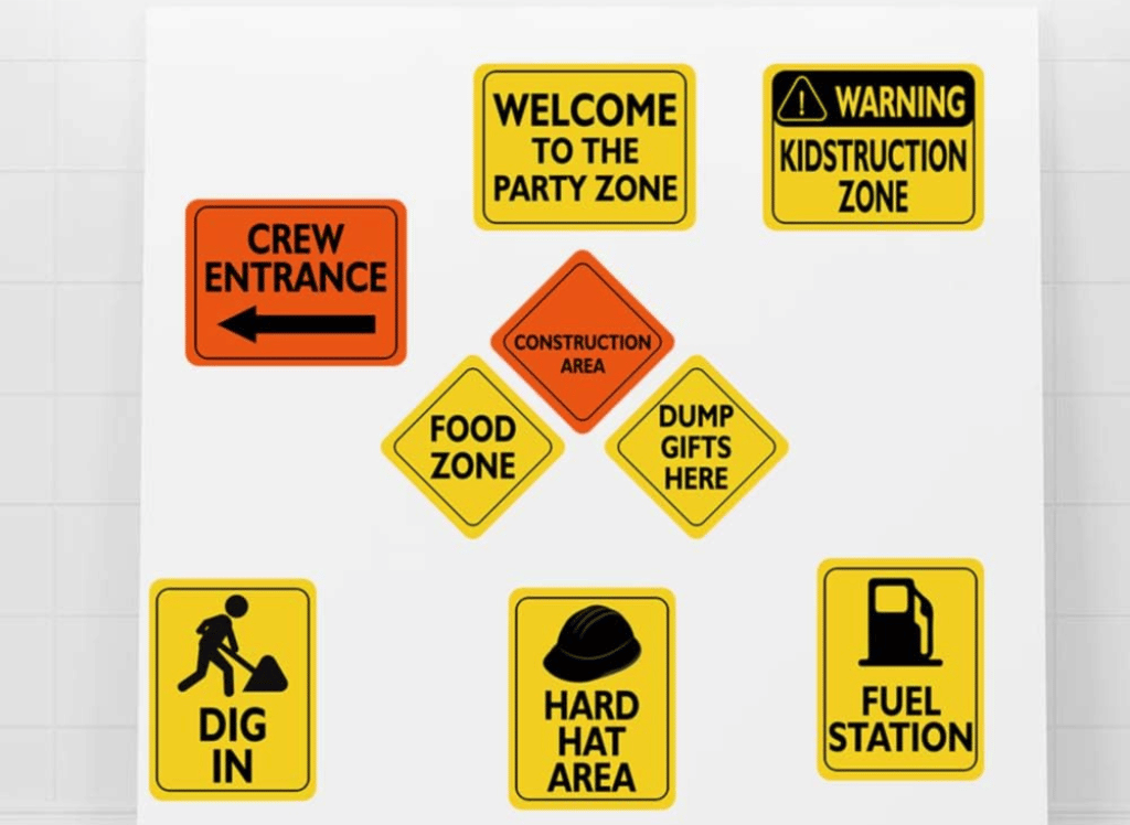 These signs are perfect for designating different areas of your party, such as a fuel station or a toy zone, adding an immersive, authentic touch to your event. Whether you're celebrating a birthday party for a little builder or hosting any construction-themed gathering, these traffic signs are sure to enhance the atmosphere and bring your theme to life.