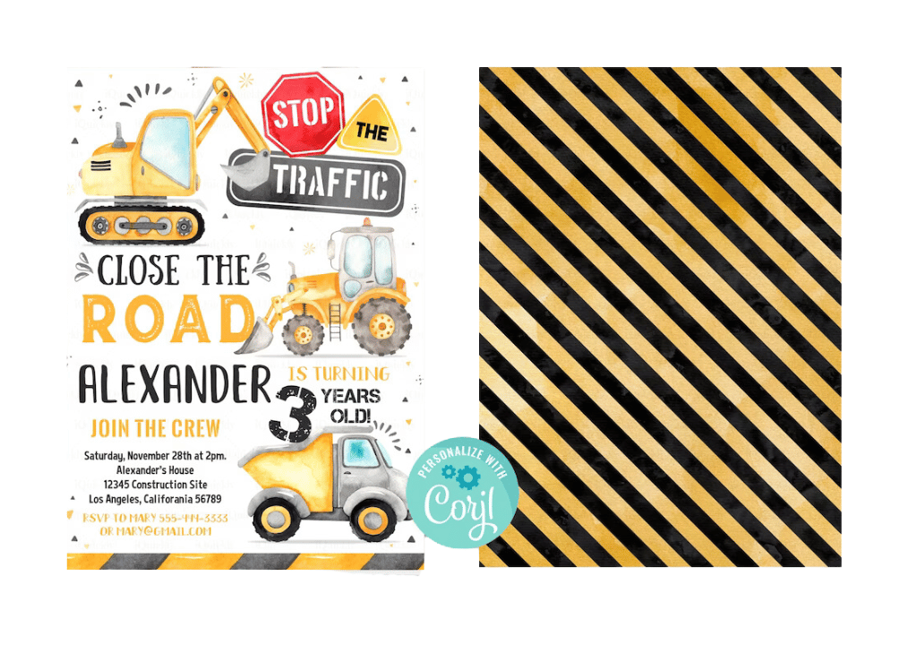 3. What should be included in a construction-themed party invite?