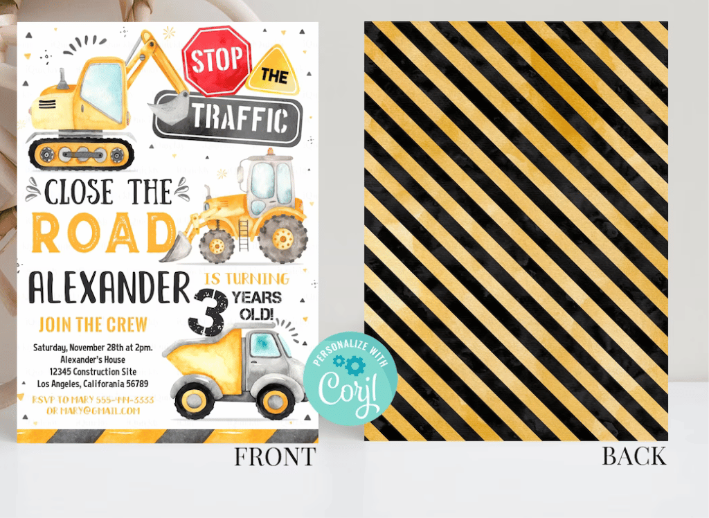 Construction party invites should be fun and interactive, featuring elements that reflect the theme. Consider the iQuickly Editable Construction Invitation. It features a cheerful dump truck and is fully editable, allowing you to customize it to suit your party needs.