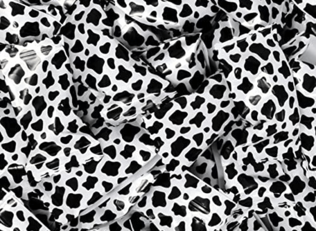 These candies come in packs of 100, making them ideal for large gatherings and events. Not only do they provide an eye-catching decoration with their unique cow print design, but they also contain no trans fat, gluten, or fat - meaning that everyone can enjoy these delicious treats guilt-free! With so many uses, whether it’s a baby shower with a cowboy theme or just a fun gathering with friends and family, these cow wrap candies will be sure to please all your guests.