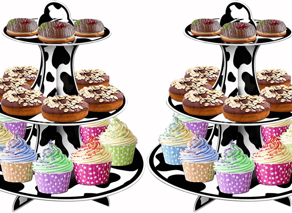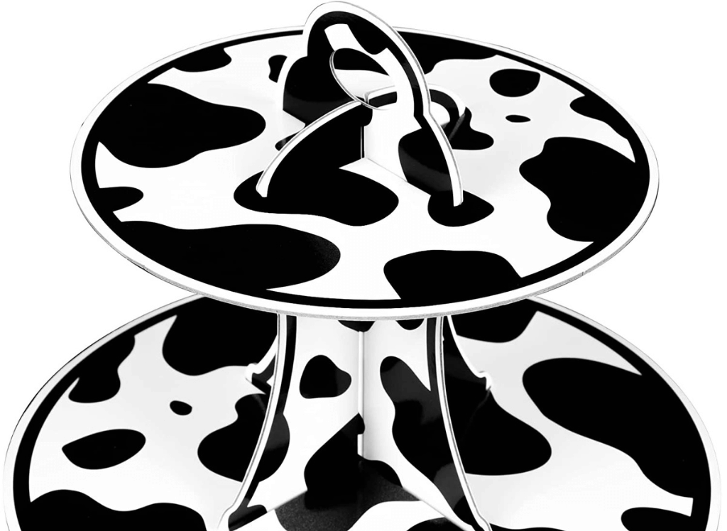 Stand is the perfect way to add a unique and festive touch to your next gathering. Made from durable cardboard, these stands feature stylish black and white cow print patterns for a fun farm animal theme. Each set includes three tiers that can be used separately or together to create an impressive display of sweet treats.