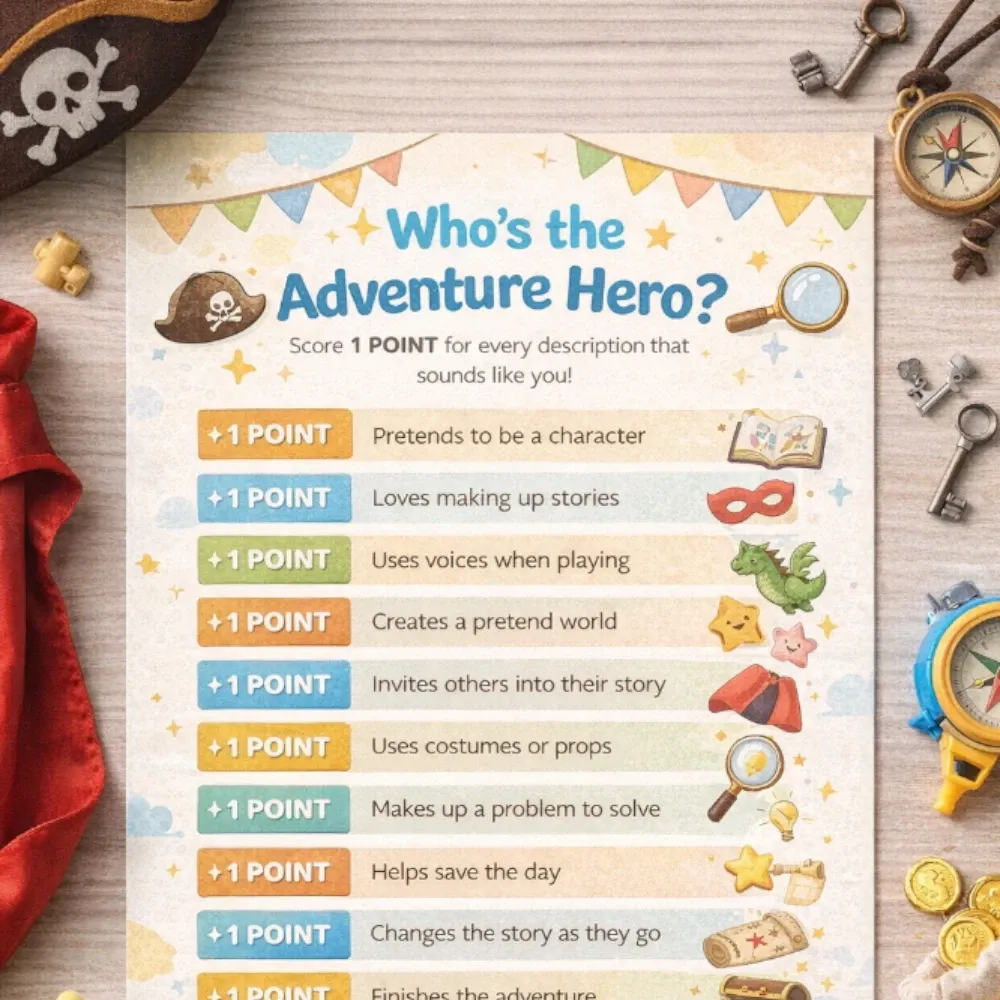 Children join an adventure—exploring jungles, outer space, or magical lands—using costumes, props, and storytelling. This type of imaginative play lets kids create their own story while learning cooperation and communication.