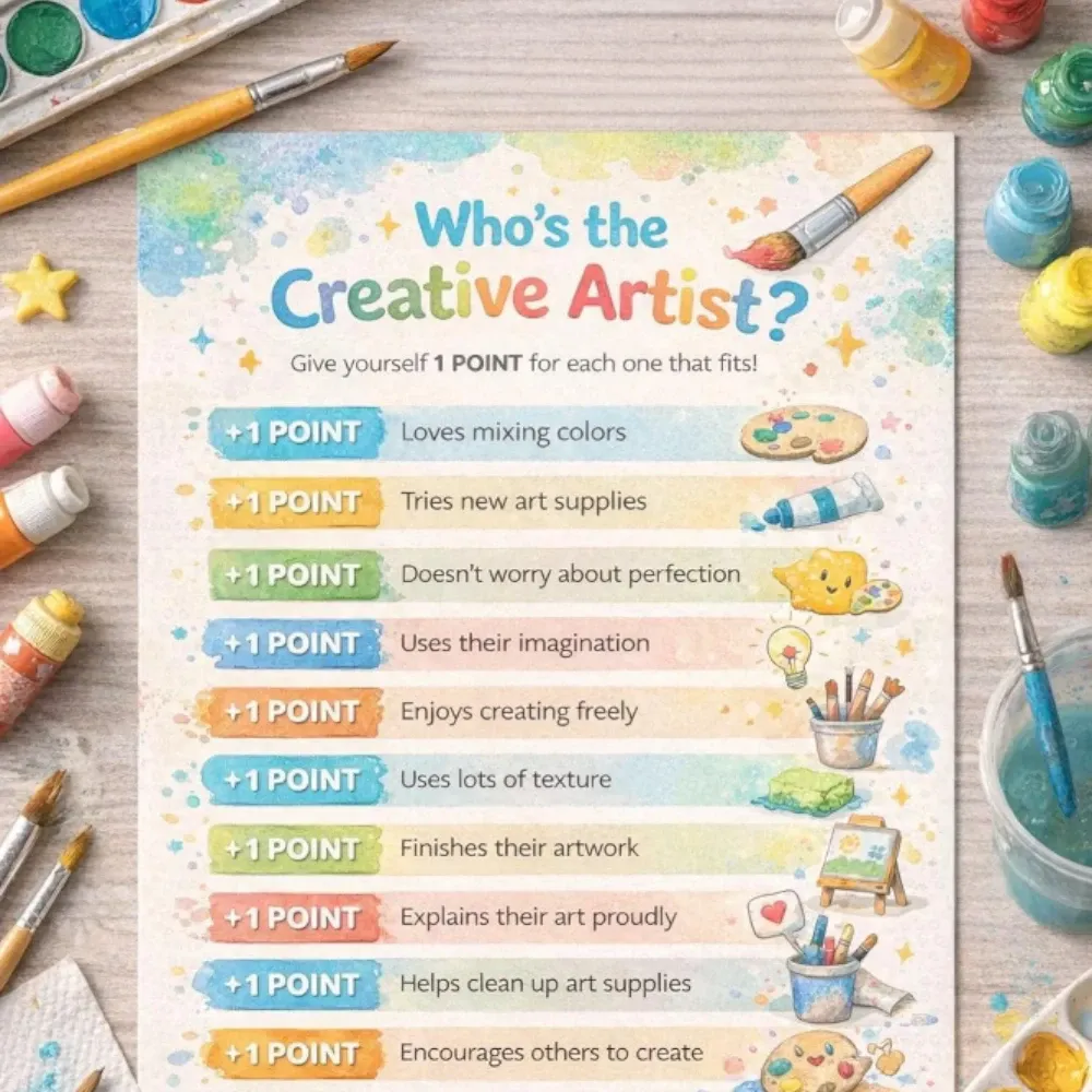 This party is about creating, not copying. Set up paint, collage, and texture stations where children explore color, movement, and materials freely.